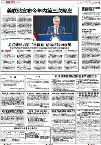 海南日报 世界新闻热点 014 2019-11-011 2019年11月01日 星期五