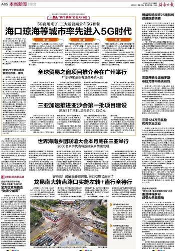 海南日报 本省新闻综合 005 2019-11-011 2019年11月01日 星期五
