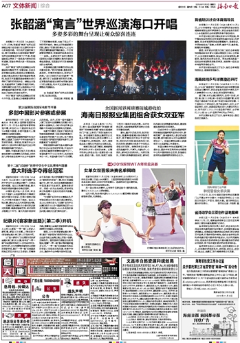海南日报 文体新闻综合 007 2019-11-031 2019年11月03日 星期日