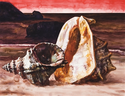 静默听涛的海螺、野蛮生长的野菠萝、破旧沧桑的海南老屋、渔歌唱晚的渔民、善良倔强的清洁工人……这些日常生活中的微小事物和平凡的人,都落入他的画作。那是属于画家对生活细致观察的敏感捕捉,兼用色彩与线条抵达了理想生活的诗性和厚重。