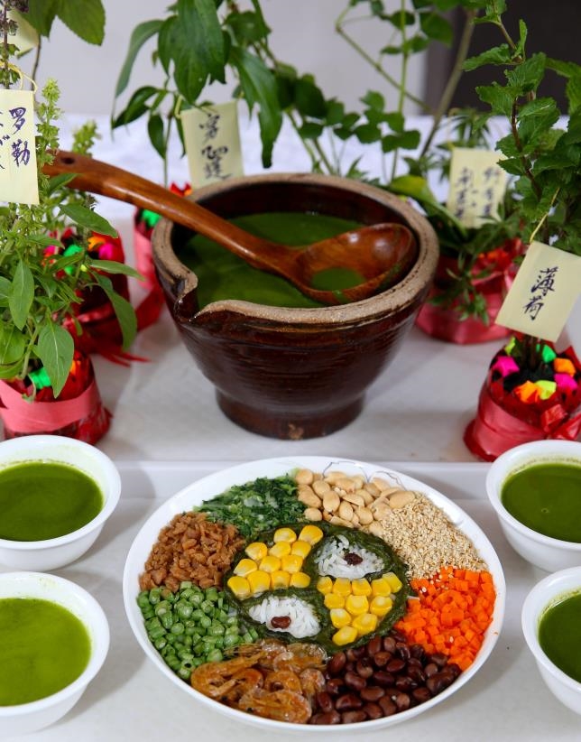 “这个米烂是我们将大米浸泡后磨成米浆,再经过漏斗倒进沸腾的开水里,让米浆变成一条条柔软雪白的米丝,接着将米丝放在水里冷却,然后再捞上来,一层一层叠放在竹篮里。配上牛肉丝、干虾米、猪肉丝、炒花生米、炸蒜头油,味道特别香美可口!”在第四届海南美食文化节现场,儋州小吃展位负责人滔滔不绝地向市民游客介绍儋州小吃的做法。