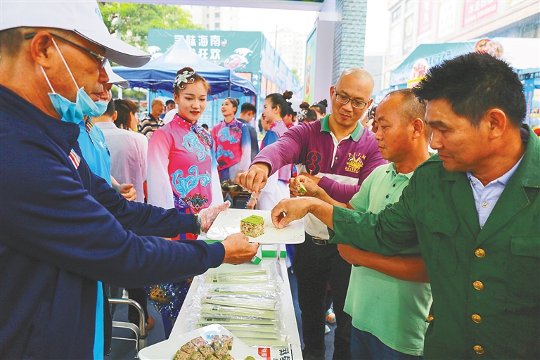 “这里的跑海鸭蛋不错,够咸,特别下饭。还有红鱼干、粽子……我经常都会给自己家乡的亲朋好友捎上一些。”说起儋州的特色美食和农产品,来自山东的刘晓君如数家珍。刘晓君到儋州生活已经两年,她表示自己和家人都非常喜欢儋州的美食。