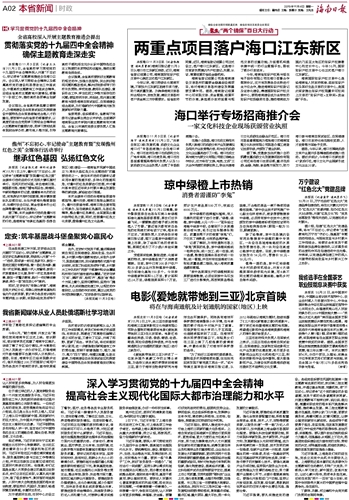 海南日报 本省新闻时政 002 2019-11-041 2019年11月04日 星期一