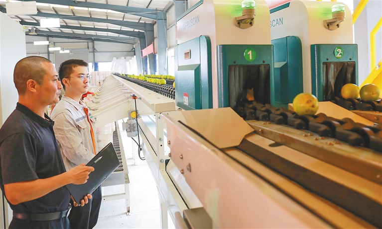 琼中:机械生产线“巧手”分拣绿橙