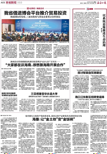 海南日报 本省新闻综合 003 2019-11-071 2019年11月07日 星期四