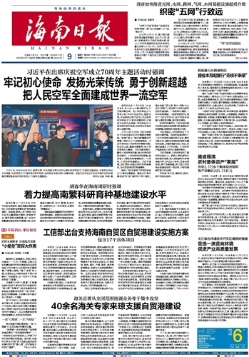 海南日报 头版 001 2019-11-091 2019年11月09日 星期六