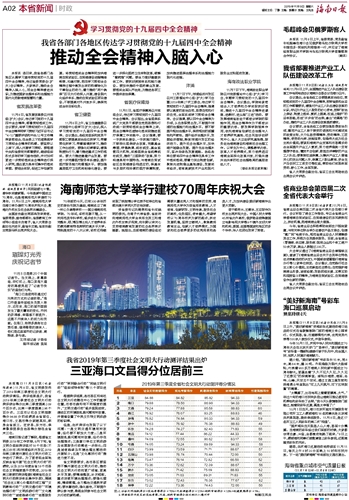 海南日报 本省新闻时政 002 2019-11-091 2019年11月09日 星期六