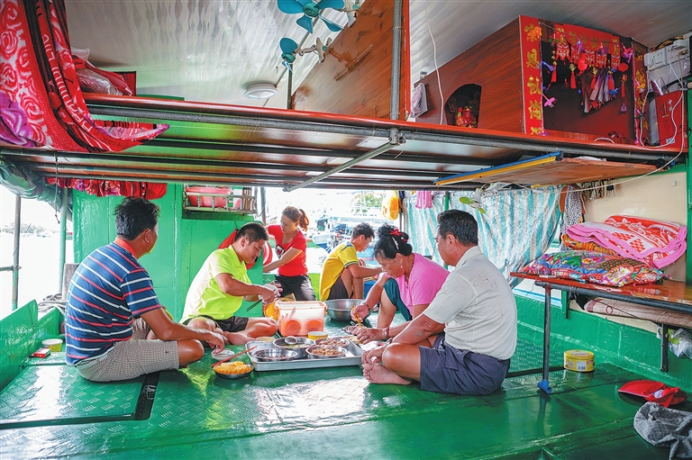 疍家渔民世居海上,以船为家,陵水黎族自治县新村镇居民徐春苗一家现在仍过着船居生活。“我从小生活在船上,长大后嫁给了渔民,家还是在船上,可以说是从一艘船嫁到了另一艘船。”徐春苗说。