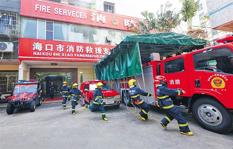 2018年11月9日,国家正式组建综合性消防救援队伍。海南消防救援总队着装也由“橄榄绿”变成了“火焰蓝”。在综合应急救援“主力军”“国家队”的定位下,他们苦练专业技能,在一点一滴中完成了向综合性应急救援力量的蜕变。