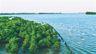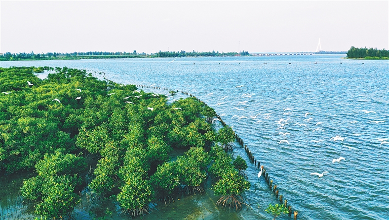 近日,在海口市美兰区演丰镇红树林保护区,良好的生态环境吸引众多南下候鸟栖息。据了解,作为海口江东新区首个生态修复项目,东寨港国家级自然保护区湿地生态修复工作正有序推进,将退塘169.02公顷,种植红树林130公顷,计划于2020年底完工。 本报记者 张茂 通讯员 王聘钊 摄