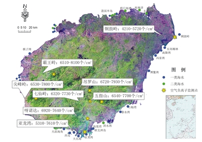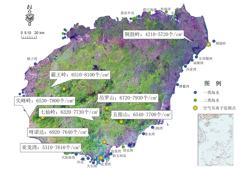 主要森林旅游区空气负离子浓度处于较高水平,霸王岭国家森林公园、尖峰岭国家森林公园、五指山国家级自然保护区、七仙岭温泉国家森林公园、铜鼓岭国家级自然保护区、亚龙湾热带天堂公园、吊罗山国家森林公园、呀诺达雨林文化旅游区等8个主要森林旅游区空气负离子平均浓度分别为7170个/立方厘米、7100个/立方厘米、7035个/立方厘米、6960个/立方厘米、4950个/立方厘米、6000个/立方厘米、7360个/立方厘米、7280个/立方厘米,远超过世界卫生组织规定的清新空气的1000个-1500个/立方厘米标准,对人体健康极有利。与去年同期比较,8个森林旅游区空气负离子浓度均无明显变化。