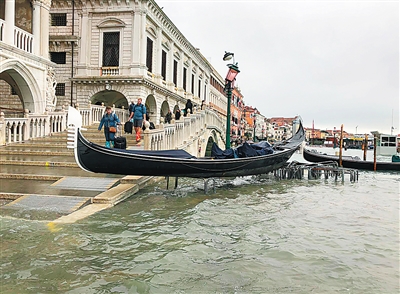 据外电报道,意大利“水城”威尼斯12日遭受洪水袭击,城区水位最高达1.87米,是自1923年有记录以来第二高的数值,仅次于1966年创下的1.94米的最高纪录。 新华社/美联