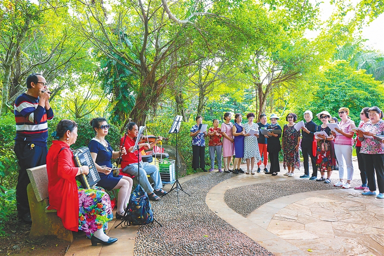 11月13日,“候鸟”老人在海口市白沙门公园开展合唱活动。 本报记者 李天平 摄