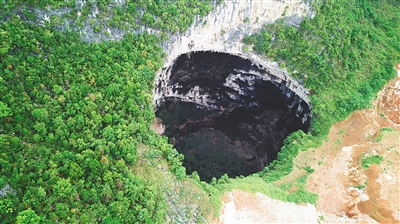 据介绍,此次新发现的天坑群,由19个天坑组成,主要分布于广西百色市那坡县的城厢镇和龙合乡,系目前北回归线以南发现的最大天坑群。