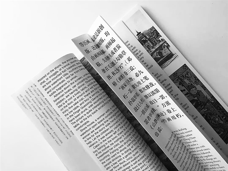 他重新诠释了桃花坞木版年画这个主题,这本书封面上的锲形镂空象征着一把木刻刀,与雕版印刷的年画内容十分契合;所有彩图的邻页都做留白处理,使主体更为突出。筒子页以M形折制,夹在中间的中英文字可帮助读者更好地欣赏画作;纸质薄软细腻,可以方便地摊开,增加了阅读欣赏的舒适度,为中国传统文化走向世界做了必备工作。