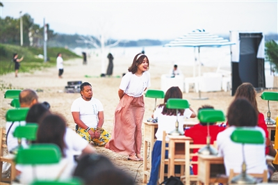 动静结合,更显旅游书博会内涵。海滩上,著名编剧史航主持泛阅读讲座,邀请了主宾国俄罗斯民间读书俱乐部与深圳后院读书会的代表嘉宾展开对话,探讨两国民众的阅读喜好,交流阅读于现代生活的意义。多支乐队及哲学诗剧《后院故事+莎士比亚》的表演,让海棠湾尽显“文艺范”。