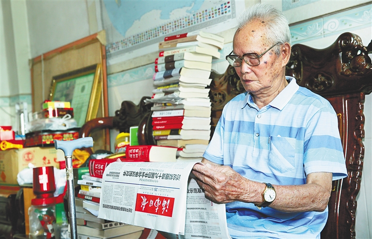 虽说我90岁了,但是多年来每天坚持看报的习惯没有变。下午2点午睡醒来,窗台上放置着邮递员中午送来的《海南日报》,趁着精神劲儿正足,我戴上老花眼镜,开始细细阅读起来。