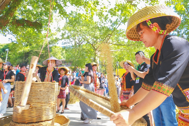 稻穗金黄,粒粒归仓。据活动主办方介绍,“啦奥门”在黎语中是“庆丰收、吃新米”之意。今年白沙“啦奥门”山兰文化节活动可谓精彩纷呈,民族特色更加浓郁。