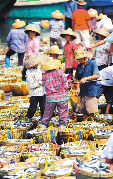 琼海潭门港码头海产品交易繁忙。 特约记者 蒙钟德 摄