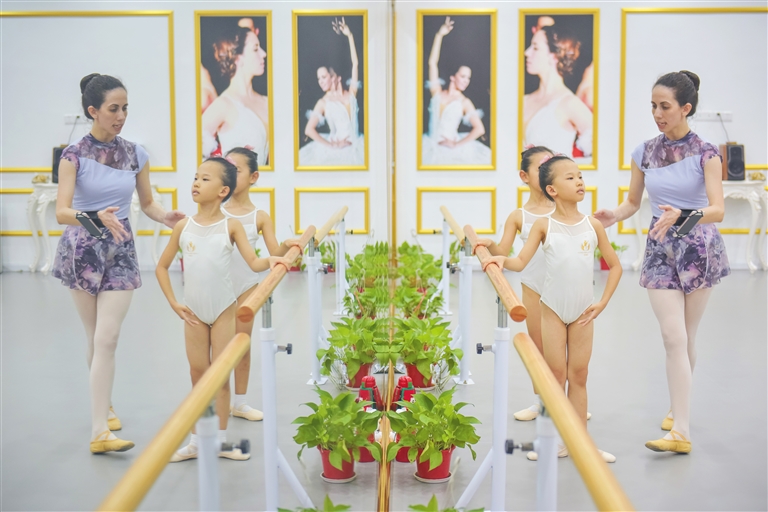 “把下巴抬起来,把脚尖绷直……”11月18日,在课堂上,面对一群天真稚嫩的孩子,芭蕾舞老师吉普西轻言细语,用普通话温柔地提醒大家跳舞时要注意的小细节。