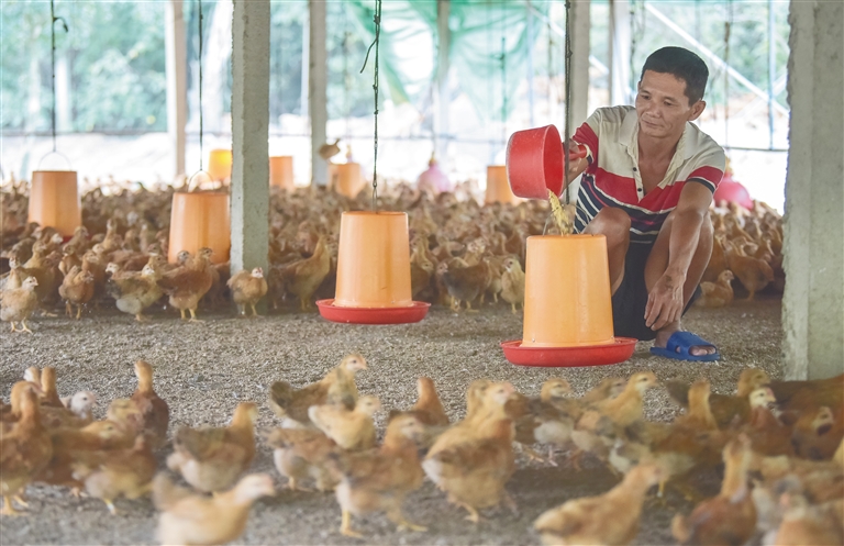 今年6月份,罗豫杨作为村里的养鸡专业户,在政府的引导下正式加入海南(潭牛)文昌鸡股份有限公司(以下简称潭牛文昌鸡公司)的养鸡产业,不仅销路不愁,而且收入翻番,尝到甜头的罗豫杨如今干劲十足,信心满满。
