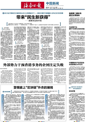 海南日报 中国新闻 013 2019-11-191 2019年11月19日 星期二