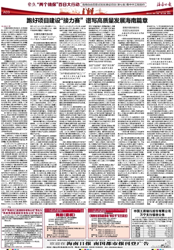 跑好项目建设“接力赛”谱写高质量发展海南篇章