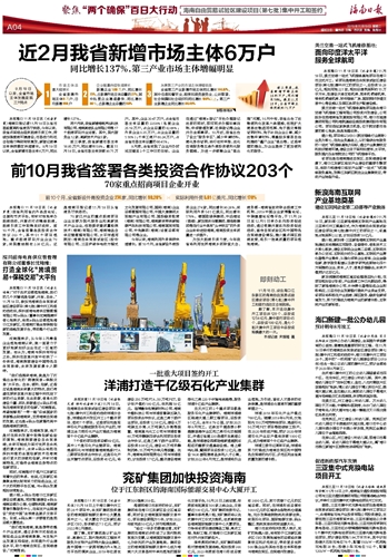 海南日报 聚焦“两个确保”百日大行动海南自由贸易试验区建设项目(第七批)集中开工和签约 004 2019-11-191 2019年11月19日 星期二