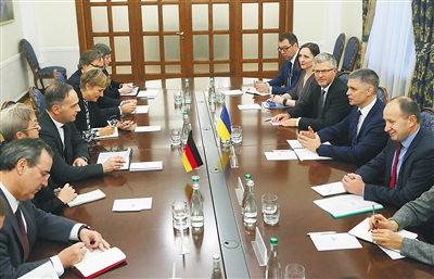当日,乌克兰外长普里斯泰科在基辅与到访的德国外长马斯举行的记者会上表示,乌克兰希望下月初在巴黎举行的“诺曼底模式”四国峰会能够取得实质性成果,为此乌方愿意接受“合理妥协”。“诺曼底模式”创立于2014年6月,法国借纪念诺曼底登陆70周年之际,邀请俄罗斯、德国、乌克兰领导人在诺曼底就乌克兰局势进行了首次磋商。 新华社发