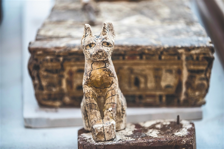 这是11月23日在埃及吉萨省塞加拉地区拍摄的新发现的动物雕像。