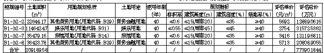 该宗地概况及规划指标等情况详见下表: