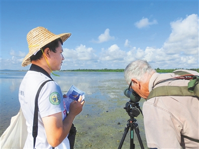 “水鸟是最好的环评师,越来越多的水鸟来到三亚繁衍生息,说明这里的生态环境变得更好了。”作为80后,符瑞祺虽然年龄不大,却工作了十多年,见证了在三亚栖息的候鸟一年一年变多,已有百余种不同鸟类。“鸟儿很聪明的,一个地方环境变差了,它们就不会来了,它们要是‘搬家’,3天就能集结好队伍。”