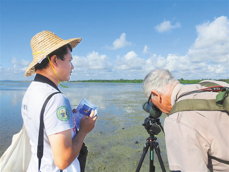 卢刚很早就能体会这种心情。他是海南观鸟界“大神级鸟人”,连续参与主导的海南越冬水鸟调查,到今年已经走过第16个年头。卢刚的观鸟爱好,起源于在海南工作的第一年读到《中国鸟类野外手册》,从那时起,他看到不认识的鸟类就翻查图鉴,慢慢地认识的鸟儿就多了起来。