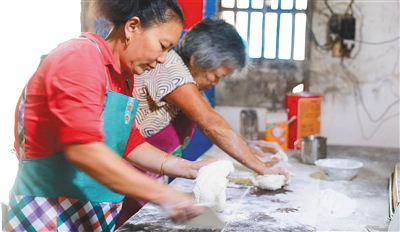 手艺和坚守为她赢得了一众慕名而来的追随者。逢年过节,周边村镇的订单纷至沓来,口中说着“不做了”“做不动了”,她手中活儿却从未停过。二儿媳能很熟练地做小煎堆,有时一天要做1000多个,但是遇上大煎堆的订单,王朝蓉还得亲自上阵。