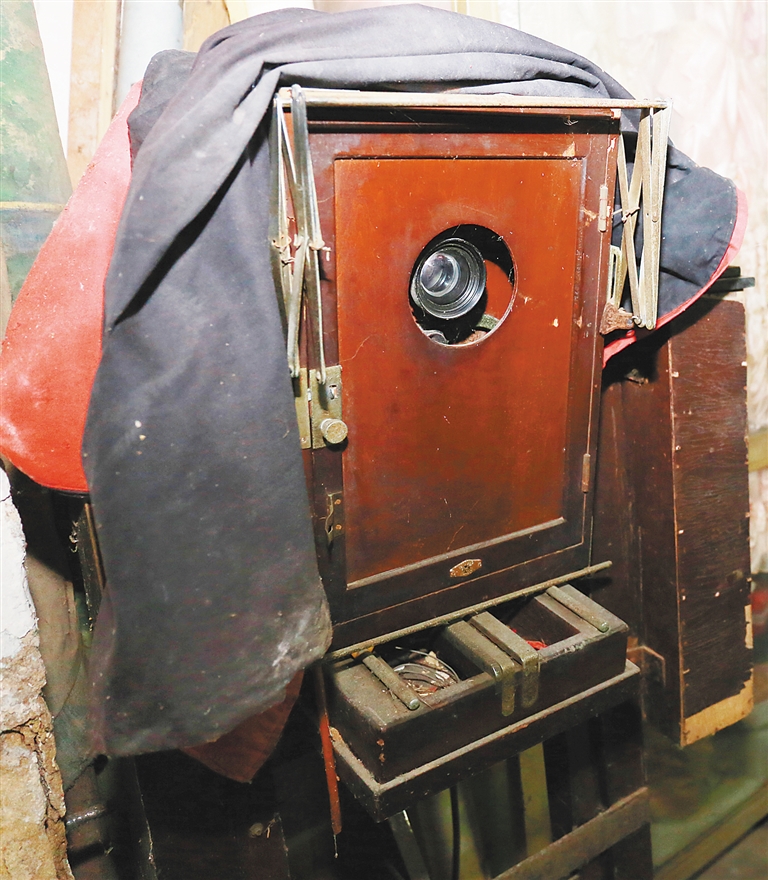 在春光摄影室里,有一台老式的木座照相机,这台“老古董”照相机放在角落里已经许久未使用,积了一层灰尘。邓巍说,早些年,有人看中了这个“老古董”,想高价买下来,但周瑞梅和邓其进舍不得卖,依旧留下来放在那里。“我父母说,当年第一代身份证人像采集,用的就是这台照相机拍摄的黑白身份证件照,还是很有纪念意义的,不舍得卖掉。”