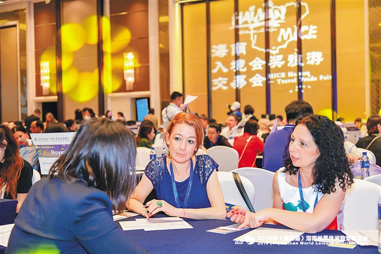 11月22日,“欢乐海南”大型旅游专场推介会在海南国际会展中心举行。推介会向前来参加本届欢乐节的各省市旅游行政部门领导、外国驻华使领馆代表、国际友城代表及重点旅游企业代表推介海南旅游,展示海南旅游的新业态、新气象,并邀请嘉宾们参与到海南国际旅游岛欢乐节各项活动中来。11月23日,2019海南入境会奖旅游交易会在海口举行,旨在宣传海南会奖游资源优势、搭建国际会奖旅游文化交流与合作平台、促进海南会奖旅游产业转型升级。来自35个国家的111位国际买家、来自国内各省区市的126位买家和海南本地181家企业代表,以及各市县旅文部门代表、旅游行业协会代表等合计逾400人参加洽谈。当天共达成合作意向超过300个,预计2020年将为海南带来超过1万名境外游客。11月24日至25日,国际国内买家还将前往海口观澜湖、博鳌、三亚等地考察踩线,进一步了解海南会奖旅游资源,寻求更多合作商机。