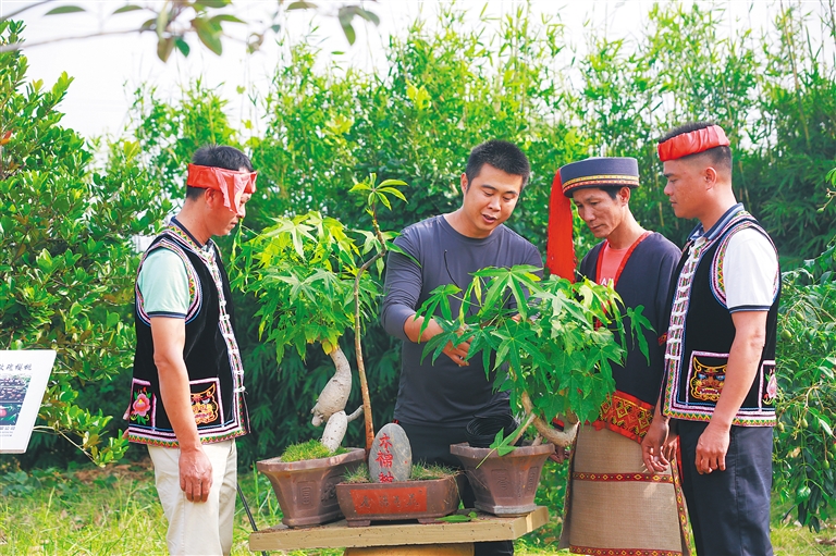 博览园共享农庄是一个以生态开发为宗旨,集种植、观赏、购物、旅游休闲为一体的绿色生态园。近年来,该园在发展的过程中积极支持当地的扶贫工作,带动周边村庄的贫困户就业,还为贫困户传授栽培技术,将贫困户培养成为盆景栽培技术工人。本报记者 陈元才
