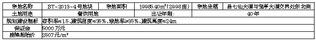 保亭黎族苗族自治县人民政府已经与被征地单位签订了《征用土地补偿协议书》,土地补偿款、安置补助费、青苗补偿费和地上附着物等款项均已支付到位。目前地块无抵押、无查封、无法律经济纠纷,具备通水、通电、通路条件,土地开发利用规划条件明确,符合土壤环境质量要求。二、竞买人资格。本次土地挂牌出让活动凡属中华人民共和国境内注册,良好的商业信誉和健全的财务会计制度,无不良经营纪录的具有独立法人资格企业,可申请参加竞买,但竞买人须同时具备国外自由贸易港运营过知名小吃美食街及酒吧项目经验,且具有一定比例的外资持股,本次挂牌不接受联合竞买。具有以下行为的竞买人不得参加本次土地挂牌出让:1.在保亭黎族苗族自治县范围有拖欠土地出让金行为,至今尚未付清的;2.在保亭黎族苗族自治县有闲置土地、低效利用土地、未按土地出让合同约定动工开发的、擅自改变土地用途等违法行为、未及时纠正的;3.被人民法院列入失信被执行名单和被税务系统列入重大税收违法案件联合惩戒名单的企业法人和个人。三、竞买规则。本次国有建设用地使用权挂牌出让设有底价,按照出价最高且不低于底价者得的原则确定竞得人。四、本次挂牌出让的详细资料和具体要求,见挂牌出让文件。申请人可于2019年11月26日至2019年12月24日到保亭黎族苗族自治县自然资源和规划局或海南省公共资源交易服务中心一楼受理大厅3号窗口咨询获取挂牌出让文件。五、申请人可于2019年11月26日至2019年12月24日到保亭黎族苗族自治县自然资源和规划局或海南省公共资源交易服务中心一楼受理大厅3号窗口提交书面申请。交纳竞买保证金的截止时间为2019年12月24日17时00分。经审核,申请人按规定交纳竞买保证金,具备申请条件的,我局将在2019年12月24日17时30分前确认其竞买资格。六、本次国有建设用地使用权挂牌活动在海南省政府会展楼二楼省公共资源交易服务中心土地交易厅进行。地块挂牌时间为: 2019年12月16日8时00分至2019年12月26日16时30分止。七、开发建设要求。(一)该地块专项用于建设美食文化城项目,竞得人须严格按照县规划部门批准的条件要求开发建设。(二)非保亭注册的法人和其他组织应在竞得土地后五日内在保亭黎族苗族自治县注册成立全资项目子公司。(三)开发建设期限:建设项目须按国有土地出让合同中约定的开工建设和竣工时间执行,并从项目地块出让之日起24个月内要达到达产。(四)根据就业需要,项目须安置10名以上失地农民用工名额。(五)该地块年度税收要求为10万元/亩,投资强度要求为300万元/亩。(六)建设项目需实施装配式建筑,实施建筑面积以与县住建部门签订的补充合同为准。八、其他事项。(一)本次出让宗地成交后,竞得人必须在签订《成交确认书》的10日内,分别与项目产业主管部门县市场监管局和县自然资源和规划局签订该项目《海南省产业项目发展和用地准入协议》和《国有建设用地使用权出让合同》,准入协议是签订国有建设用地使用权出让合同的前提条件。不按期签订准入协议或出让合同的,视为竞得人自动放弃成交权力,竞得人应承担相应法律责任。(二)竞得人从国有建设用地使用权出让合同生效之日起60日内付清土地出让金(已缴交的保证金可抵充土地出让金)。(三)本次出让地块属餐饮用地,以现状土地条件挂牌出让。竞买人应当现场踏勘出让地块,申请参加竞买的,视为对出让地块现状条件无异议,地块涉及平整场地、清杂地上物资、地上地下电线路、光缆的迁移等费用由竞得人负责。(四)申请参加竞买的,视为认同《海南省产业项目发展和用地准入协议》,参考范本请参阅原海南省国土资源厅等七部门《关于实施产业项目发展和用地准入协议的指导意见》(琼国土资规〔2018〕8号)。(五)竞得人取得土地使用权后,应严格按照规划要求建设,涉及绿化、环保、消防、交通管理等应符合国家和海南省的有关管理规定。(六)本次成交价款不包括各种税费(相关税费由双方按规定缴纳),挂牌佣金由竞得人按有关规定支付。(七)本次竞买活动进行现场书面报价,不接受电话、邮寄、电子、口头报价。(八)本次挂牌出让事项如有变更、届时以变更公告为准。九、联系方式。联系地址:海南省保亭黎族苗族自治县保兴中路园林巷、海南省公共资源交易服务中心一楼受理大厅3号窗口。联系人:邢先生 李先生 张女士。联系电话:0898-83666228 65303602 32855875。查询网址:http://zw.hainan.gov.cn/ggzy/http://lr.hainan.gov.cn/