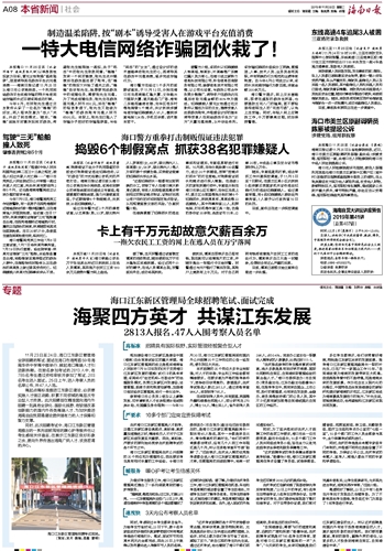 海口警方在经过1个多月的前期侦查后,于11月13日,分别在海口市龙昆南路汇隆大厦、文华路兴力国际大厦、蓝天路名门广场、海甸二东路炬鑫商住楼、龙华区苍东村等地捣毁5个窝点,共计抓获涉嫌电信诈骗犯罪嫌疑人91人,缴获涉案电脑124台、手机百余部、话术剧本若干。