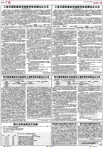 海南日报 广告 014 2019-11-261 2019年11月26日 星期二