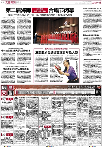 海南日报 文体新闻综合 015 2019-11-261 2019年11月26日 星期二