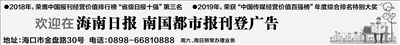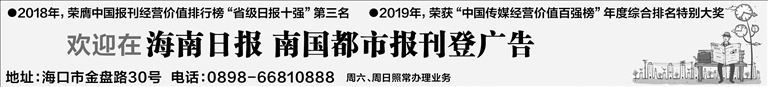 海南日报报业集团旗下媒体: 海南日报 |南国都市报 |南海网 |南岛晚报 |证券导报 |法制时报 |海南农垦报 返回首页