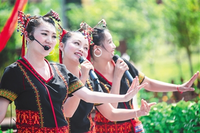 夕阳西沉,坐落在巍巍五指山脚下的琼中黎族苗族自治县上安乡作雅村,随着准点敲响的锣鼓热闹起来。“叫侬唱歌侬就唱咧,只要歌声传四方……”64岁的王取英清了清嗓子,婉转悠长的旋律顿时便回荡在村庄上空。这里是“中国民间艺术之乡”,村里的男女老少都会唱黎族民歌,他们以歌代话、借歌传情,在歌声中完成着一次次情感碰撞。