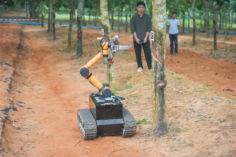 海胶红光分公司使用智能割胶机器人割胶。 本报记者 袁琛 摄