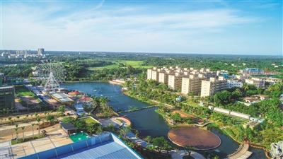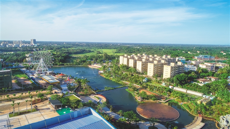 经整治、建设后的文昌霞洞湖休闲公园,集水上游览区、湿地景观区、岸边休闲区为一体。 本报记者 袁琛 摄