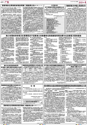 海南日报 广告 011 2019-11-281 2019年11月28日 星期四