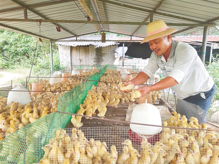 因为他养鸭子养得好,不少收购商主动上门求购,逐渐形成稳定的销售渠道,王贤祥的收入也越来越稳定。2017年,在政府的帮扶下,王贤祥家实现危房改造,并顺利脱贫。到2018年,王贤祥再次申请5万元贷款,扩大养殖规模,全年养鸭2万多只,收入十多万元。王贤祥另起了地基,给大儿子建了一套新房。今年年初,王贤祥还鼓励妻子去海口找了一份工作,每月能挣2000多元。
