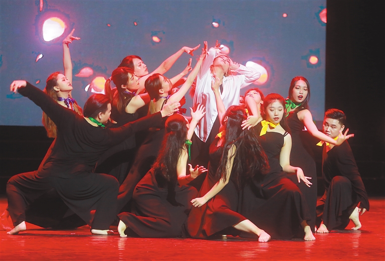 11月28日,海南大学第十二届舞林盛会在海大思源学堂大礼堂举行。图为舞蹈团献上的精彩舞蹈表演。 本报记者 李天平 摄