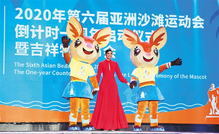 亚奥理事会、国家体育总局、海南省政府有关部门和三亚市相关负责人共同启动亚沙会倒计时一周年装置。
