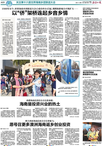 两年一度的世界海南乡团联谊大会是全世界海南人联络乡情的盛会,也是广大乡亲共谋发展的重要平台。